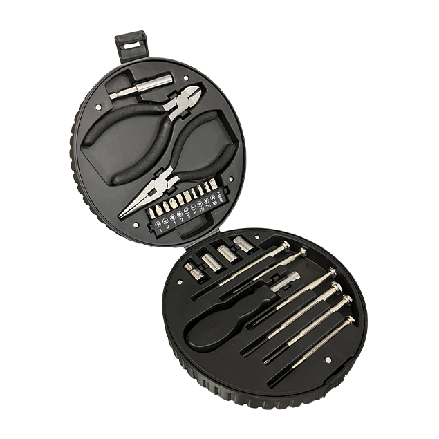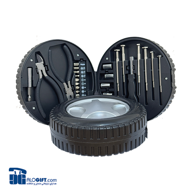 جعبه ابزار 24 تکه شامل : انواع پیچ گوشتی ، دم باریک ، انبردست ، آچاربوکس،آچار آلن ، پیچ گوشتی ساعتی ،ابزار فلزی کارآمد که با طرح تایرخودرو می باشد .این جعبه ابزار فضای کافی جهت چاپ روی تایر را دارد .این مدل جعبه ابزار با طراحی خاص و منحصر بفردی که دارد یک هدیه جذاب برای سازمان ها و مدیران می باشد .