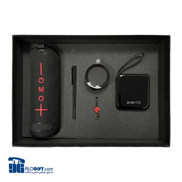 ست مدیریتی دیجیتال 5تکه دارای اجزای ارزشمندی می باشد یک اسپیکر استوانه ای چراغ دار برند ایکس انرژی همراه با یک پاوربانک مربعی 10هزار برند ایکس انرژی و استند موبایل رومیزی فلزی وکیومی مدل 360 درجه که می تواند روی میز یا سطوح مختلف بچسبد -خودکار درب دار فلزی مشکی - فلش 32G برندایکس انرژی