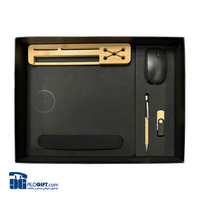 ست رومیزی دیجیتال 6تکه -ست پد ماوس وایرلس- تقویم رومیزی -فلش 32گیگ-خودکار چوبی سرتاچ-موس وایرلس