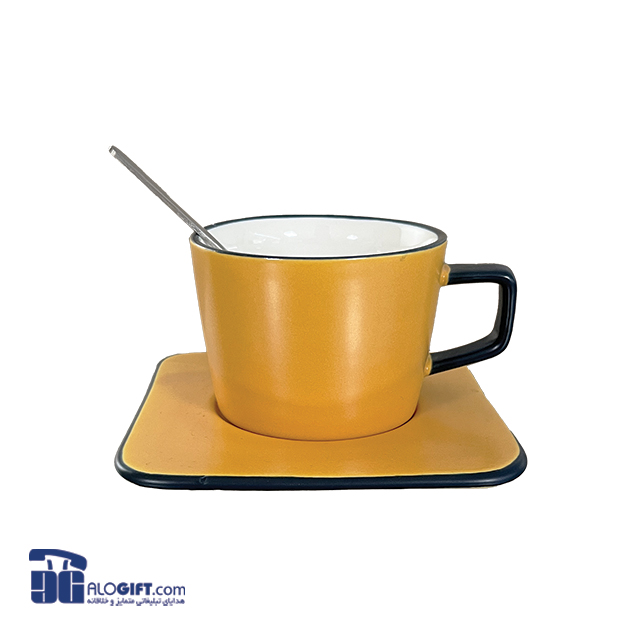 فنجان نعلبکی + قاشق سرامیکی بدنه رنگی استفاده در ماکروویو و ماشین ظرفشویی