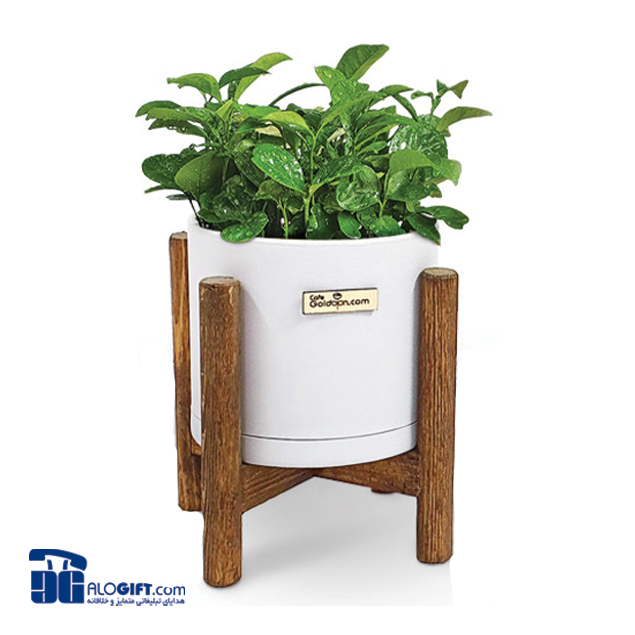 سبزه با گلدان استوانه ای پایه چوبی