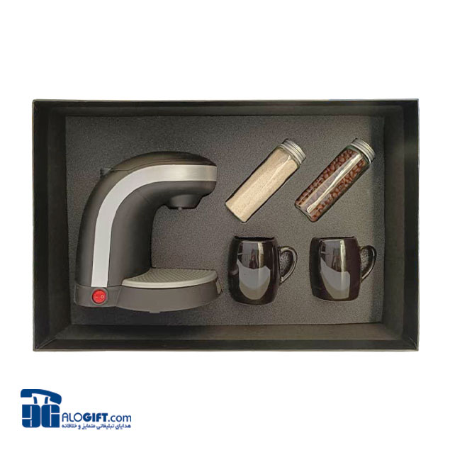 ست پذیرایی قهوه ساز برقی-دو عدد فنجان سرامیکی-دو عدد باکس شیشه ای قهوه