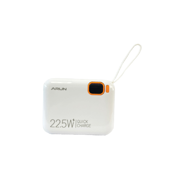 پاوربانک 10MA هزار برند آران مربعی کوچک رنگ سفید براق دارای دو کابل متصل به بدنه همراه با تایپ C و ios می باشد .همچنین دارای دوخروجی که امکان شارژ گوشی 2 گوشی هوشمند را فراهم می نماید .دارای نشانگر LED با درصد شارژ باطری و فست شارژ می باشد.